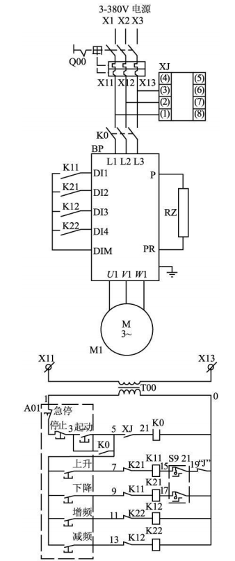 能提高工作效率:在空載下,可將起升速度子啊1倍額定速度與1.5倍額定速度之間任意設定,提高空載下的運行速度,以提高工作效率。變頻器控制系統工作原理如下圖:
