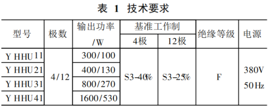 該產(chǎn)品在電動環(huán)鏈葫蘆中為裝入式封閉結構,共有四個規(guī)格組成的一個系列,根據(jù)電動環(huán)鏈葫蘆工作特性,用戶提供技術要求,如表1所示: