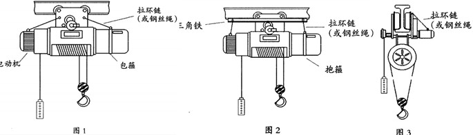 1、捆綁電動(dòng)機(jī)、減速箱的第一種方法:對(duì)吊物升降電動(dòng)機(jī)進(jìn)行捆綁。其方法是在電動(dòng)機(jī)的起吊環(huán)上串接環(huán)鏈,串接環(huán)鏈的另一端固定在小車滑輪夾板外側(cè)上。環(huán)鏈的選用要根據(jù)電動(dòng)機(jī)重量、捆綁夾角的大小等,通過計(jì)算或查起重吊索具選用表來確定。減速箱用包鐵捆綁牢固,然后用環(huán)鏈連接牢固,環(huán)鏈的另一端固定在小車滑輪夾板上,焊在小車滑輪夾板外側(cè)上(見圖1)。