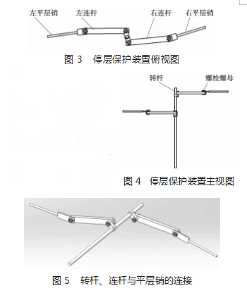 經分析,升降機所用停層保護裝置為轎廂左、右兩 側的平層銷。該平層銷采用一套連桿裝置,通過轉桿的 轉動帶動左、右兩側的連桿,再由連桿帶動兩側的平層銷伸出或收回(圖 3、圖 4)。