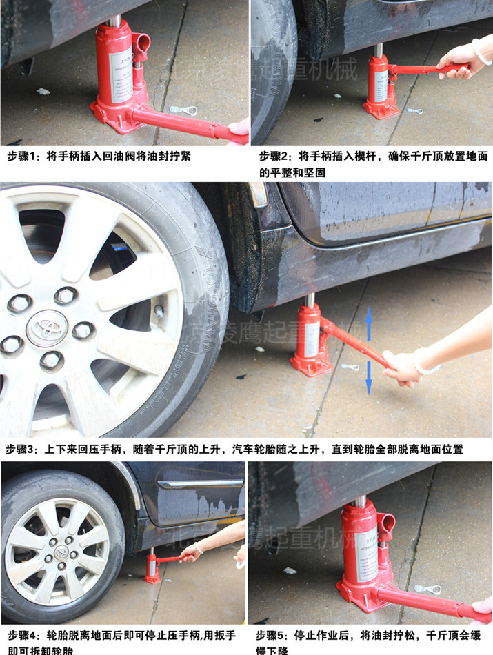 立式液壓千斤頂在汽車維修中的使用步驟圖: