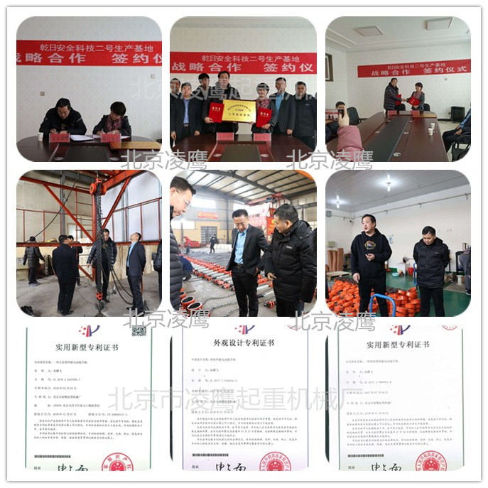 2019年2月21號(hào)北京市凌鷹起重機(jī)械廠正式與乾日安全科技二號(hào)生產(chǎn)基地達(dá)成戰(zhàn)略合作,簽訂合同。