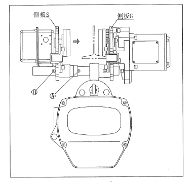 (3)可靠支撐側板G,以防從軌道上掉落,用力推側板S,將其軌道輪放置于軌道表面上。