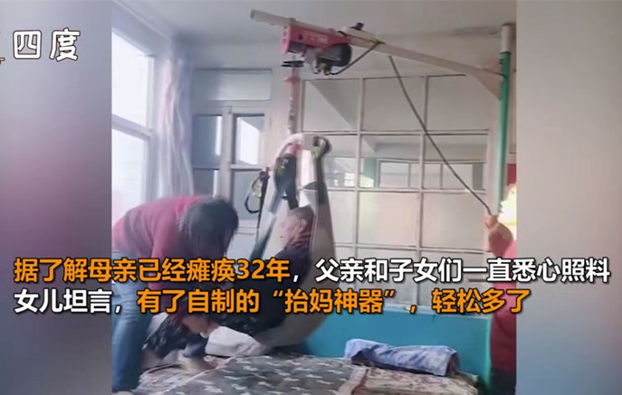 今日河北保定一則新聞刷新了朋友圈,“父親子女照顧癱瘓母親32年,自制“抬媽神器””,據(jù)悉,母親已癱瘓32年,子女與父親一直悉心照顧。一時間網(wǎng)友被子女的孝順所感動,更被其家人的不離不棄所感動。