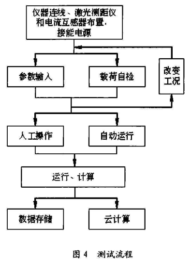 如下圖所示,測試開始前,將智能電表接入電動葫蘆控制箱的輸入端,互感器穿過電動葫蘆起升電機的相線,激光測距儀通過磁力座吸附于吊鉤滑輪組的側(cè)面罩殼上、者砝碼下面或側(cè)面。接通移動電源,接入工頻電流電源給移動電源充電。