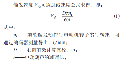 系統(tǒng)通過監(jiān)測打桿電氣開關的信號,編碼器和計時器獲取電動葫蘆安全制動器的觸發(fā)狀態(tài)、觸發(fā)轉速及制停時間,并由式(2)求取制停距離。